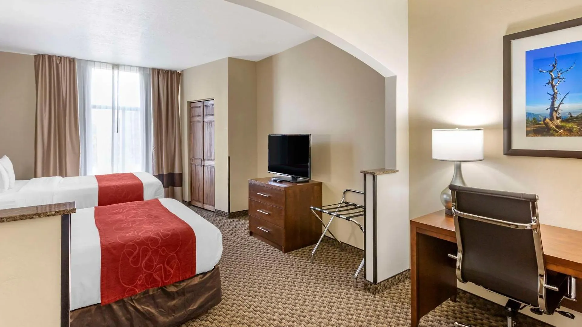The rooms at The Comfort Suites Ogden Conference Center are clean, comfortable, and spacious, offering a range of amenities for a pleasant stay. All guestrooms feature air conditioning, high-speed internet, and complimentary newspapers. Some rooms also include a seating area, a sofa, and a work desk, perfect for relaxation or catching up on work. The bathrooms are well-appointed, with hairdryers and some even offering the added luxury of a tub and a hydromassage shower. Whether you choose a double room or a twin room, you can expect elegant furniture, a carpeted floor, and mountain views. Certain rooms also feature a mini fridge, a microwave, and tea/coffee making equipment for added convenience.